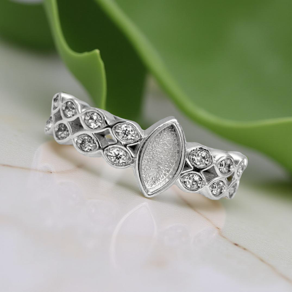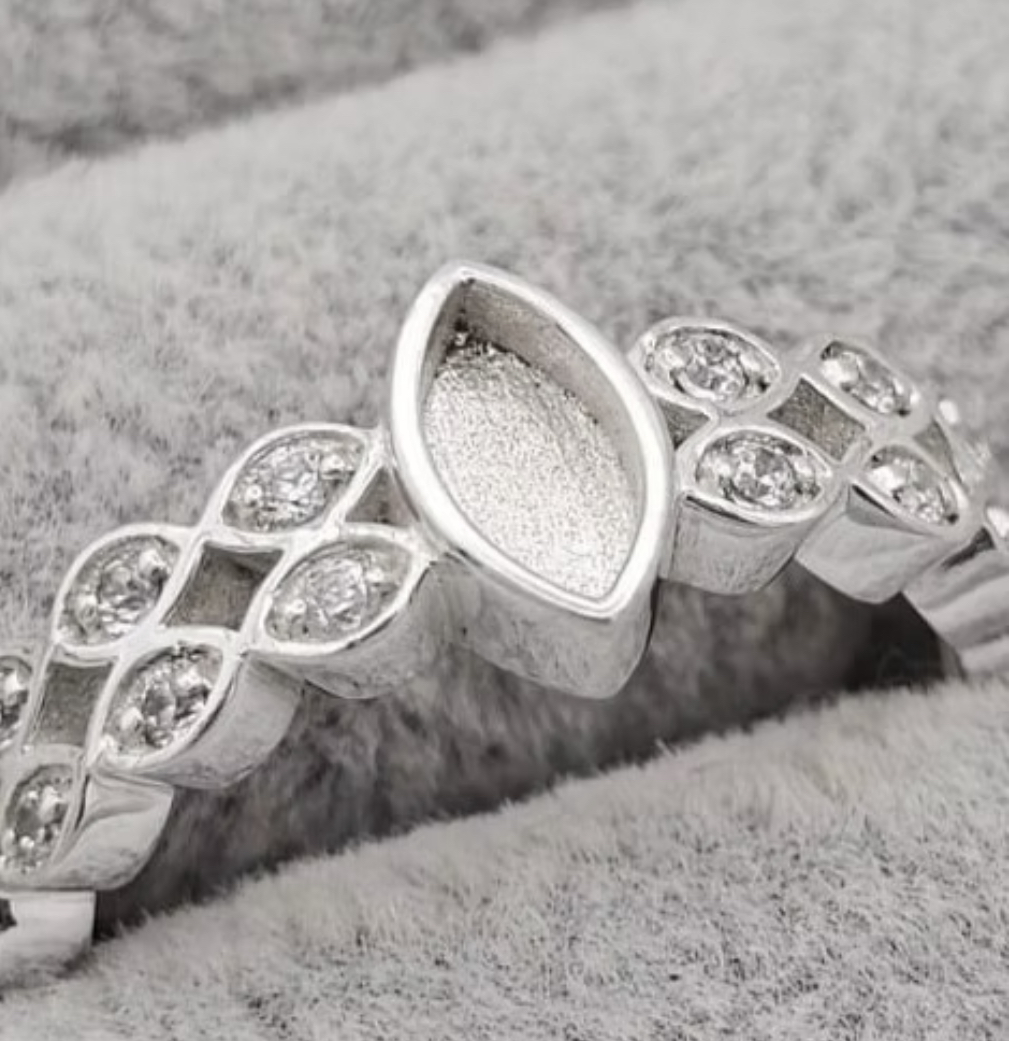Our Silver Double Marquise Band Ring features a central marquise setting for your loved ones inclusions, embraced by twin bands of sparking Cubic Zirconia crystals.  This ring is a stunning blend of elegance and meaning.