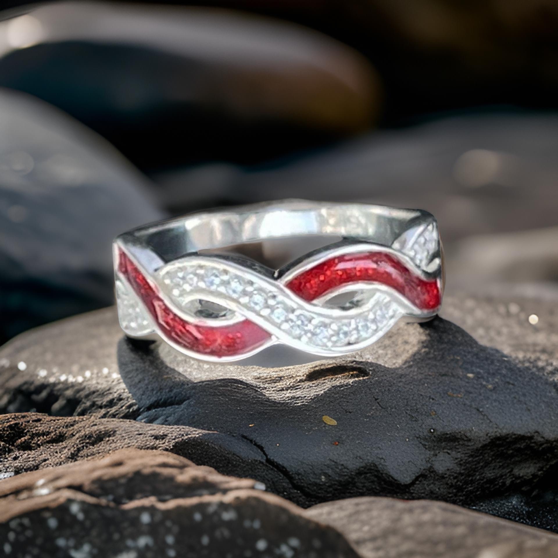 Designed with graceful wave-like curves, this Silver ring features a secure channel to hold your treasured inclusions, making it as personal as it is stylish. Sparkling Cubic Zirconia Crystals dance along the crest, adding a touch of brilliance that captures the light – just like cherished memories captured forever. Custom sizes are available on request, please contact us for more information.