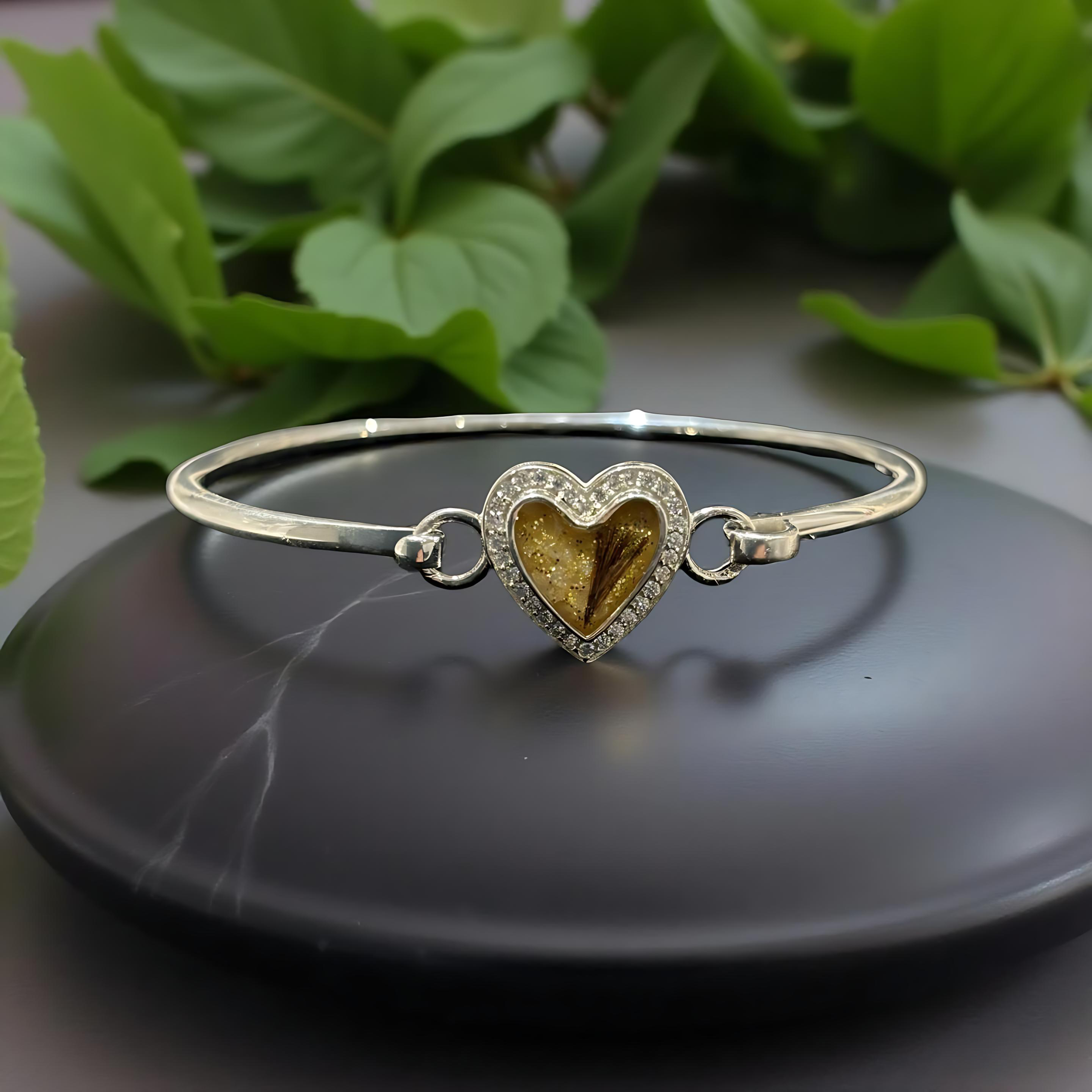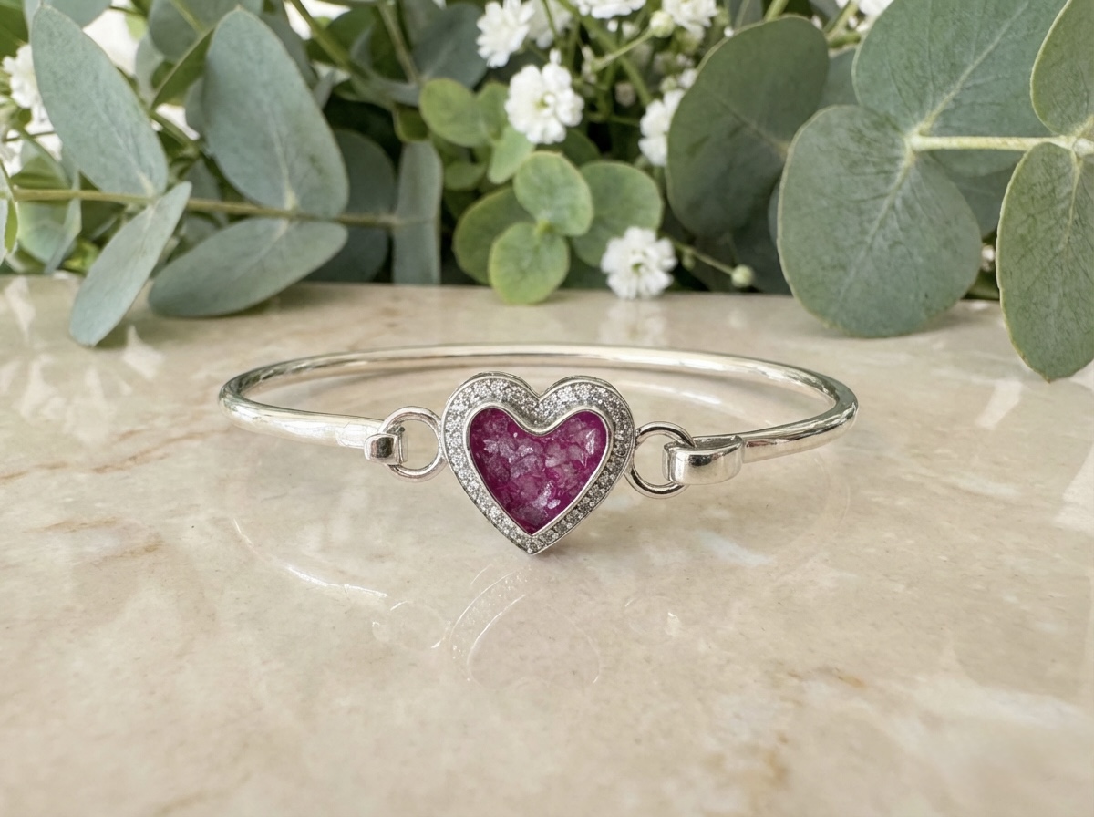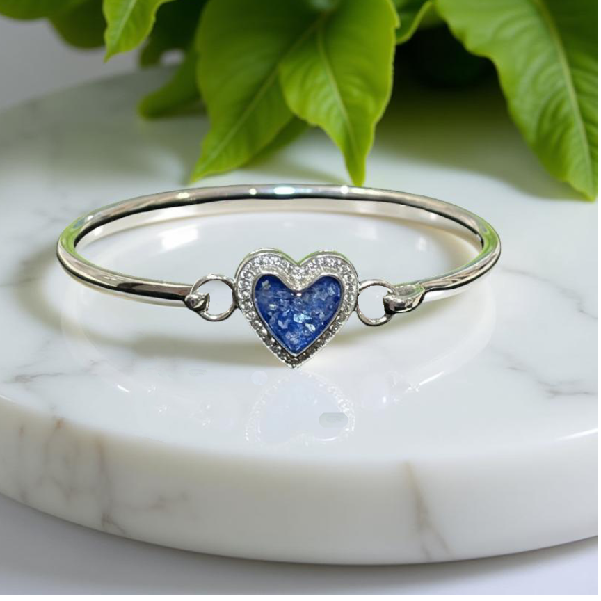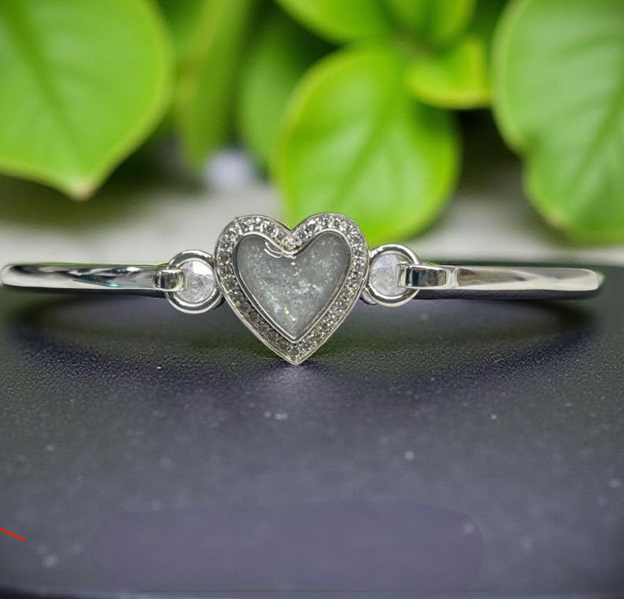 This beautiful Silver Cubic Zirconia Heart Cluster Bangle is the perfect way to showcase your loved ones Inclusions, transforming jewellery into a timeless keepsake.  Available in three sizes, Small 17cm,  Medium 19cm and Large 21cm. Custom sizes available on request.