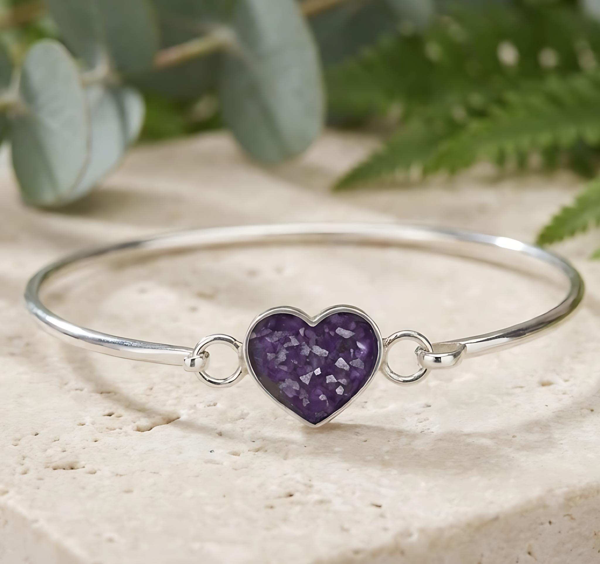 This beautiful Heart Bangle is the perfect way to showcase your loved ones Inclusions, transforming jewellery into a timeless keepsake.  Available in three sizes, Small 17cm,  Medium 19cm and Large 21cm. Custom sizes available on request.