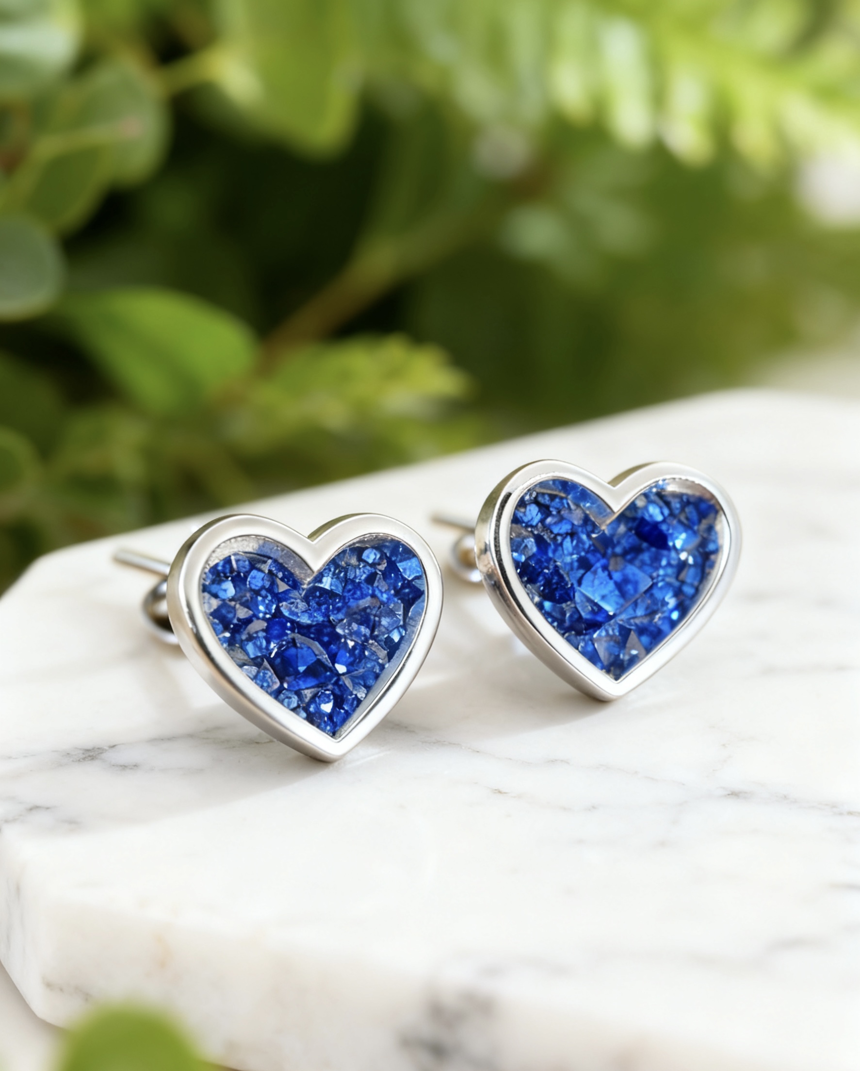 Our Silver Earrings are beautifully crafted and designed to compliment any outfit.  These Heart Stud Earrings are designed to discreetly hold the inclusions of your choice and are skilfully created with your chosen coloured resin. Each pair adds a timeless touch and a symbol of love and remembrance, beautifully crafted to keep your loved ones close forever.