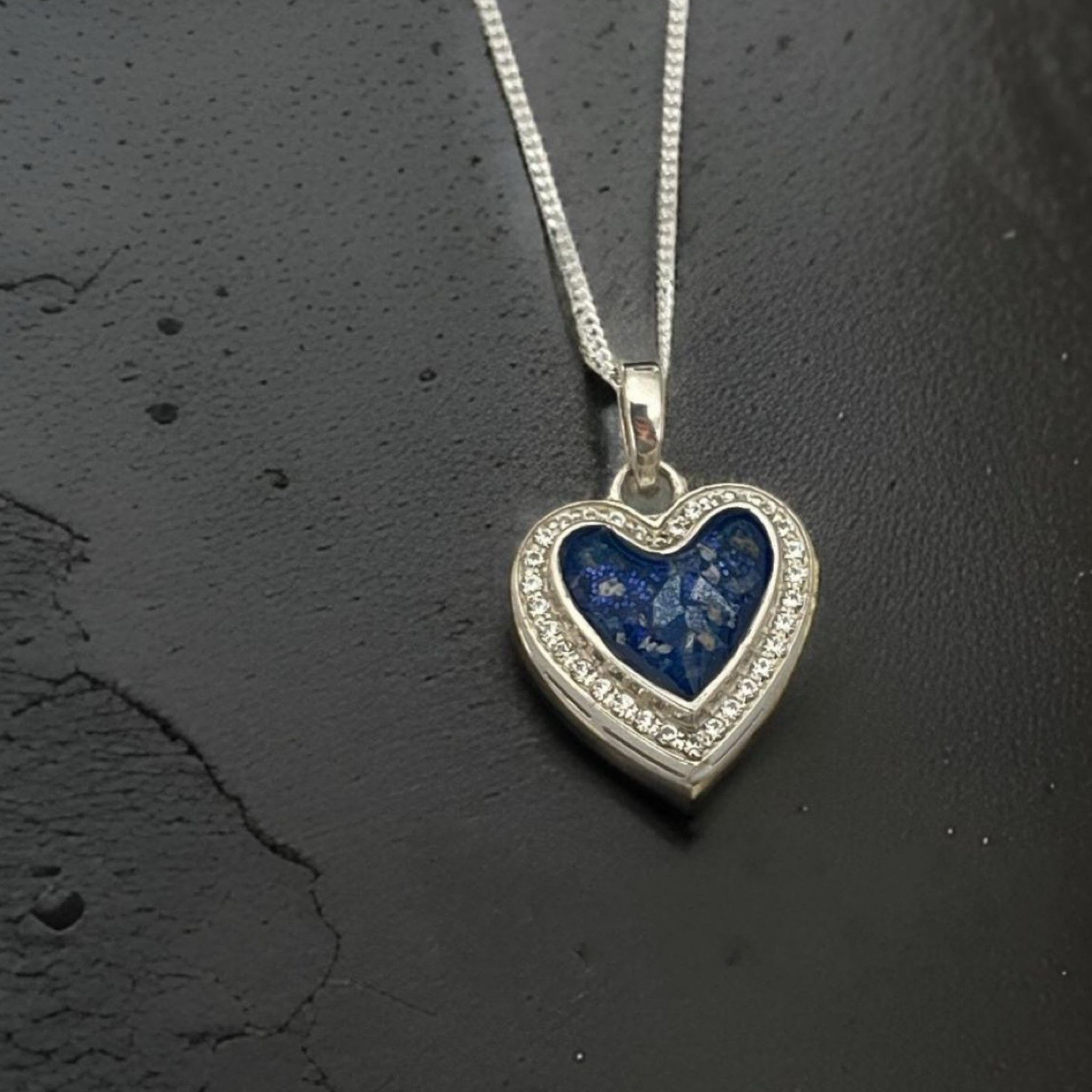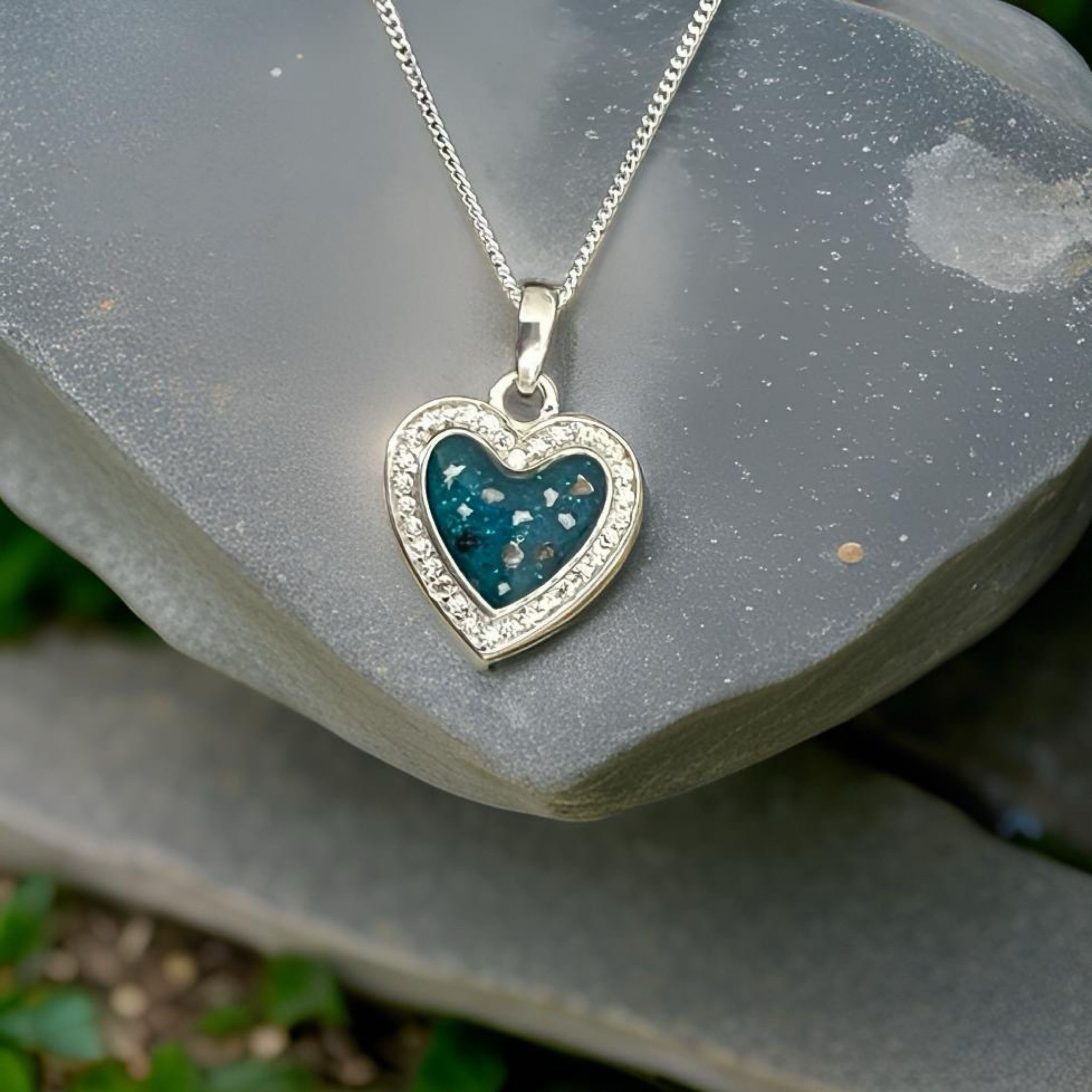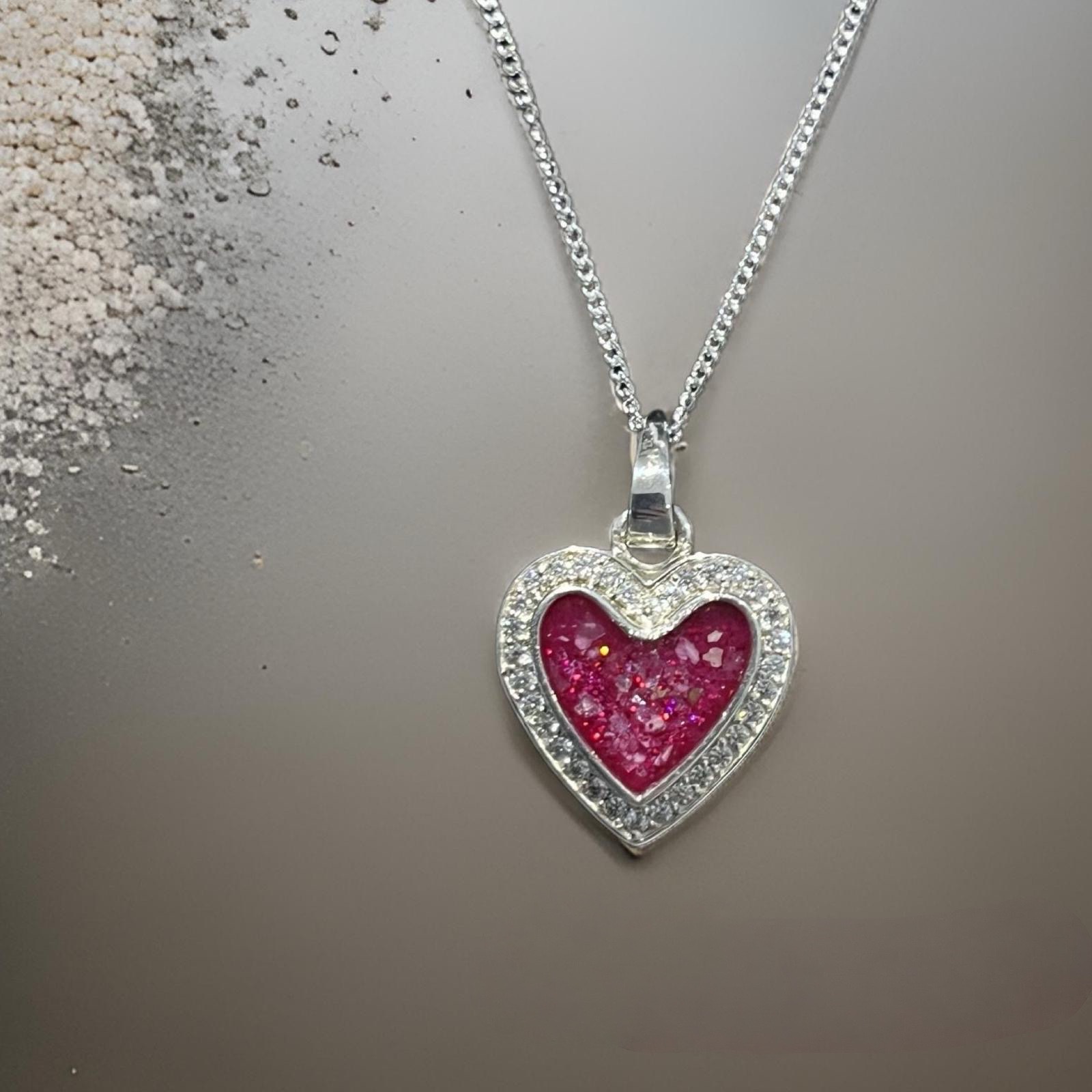 Keep love lose with our silver Heart Necklace, beautifully surrounded by sparking Cubic Zirconia crystals. At its centre lies a special chamber designed to hold your precious inclusions so that you can carry treasured memories wherever life takes you.