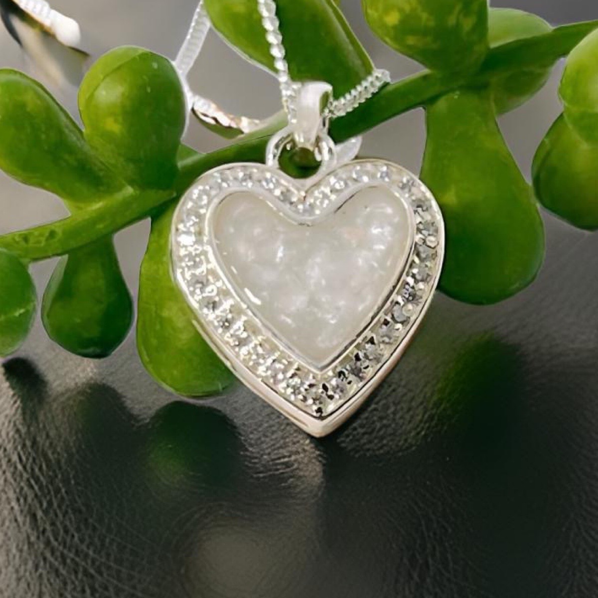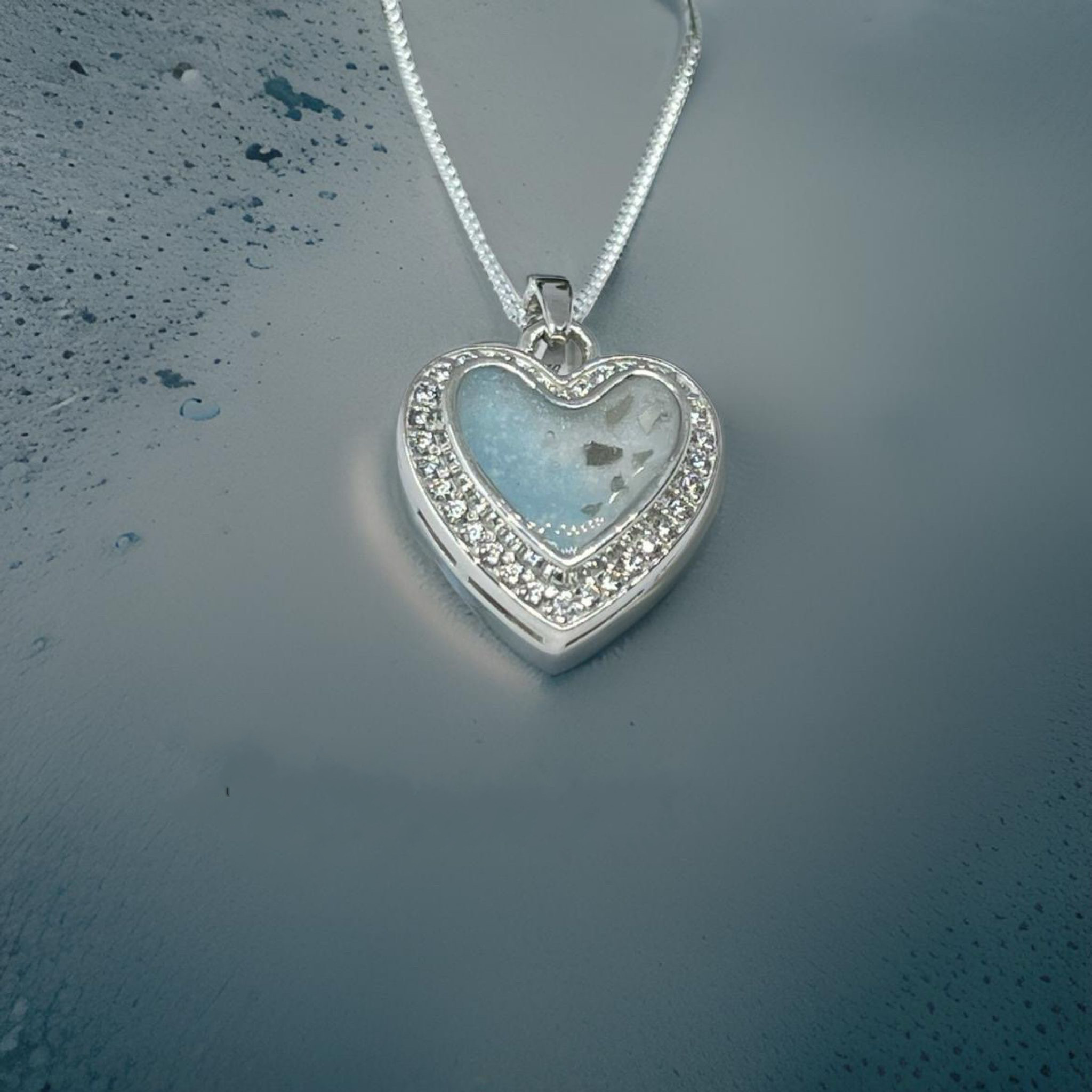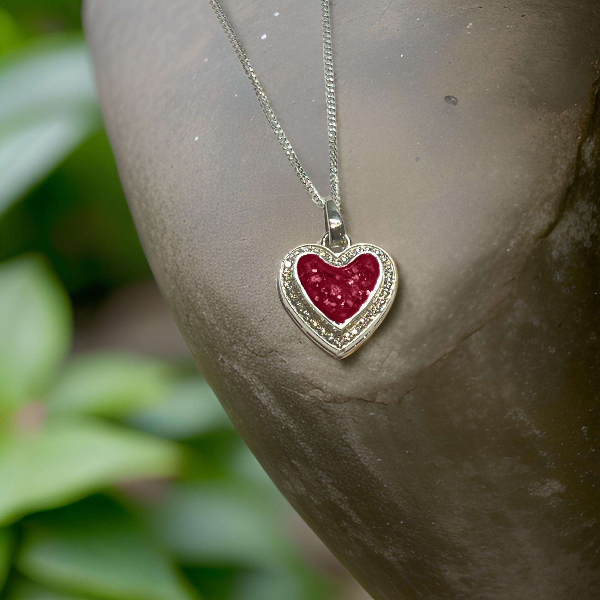 Keep love lose with our silver Heart Necklace, beautifully surrounded by sparking Cubic Zirconia crystals. At its centre lies a special chamber designed to hold your precious inclusions so that you can carry treasured memories wherever life takes you.