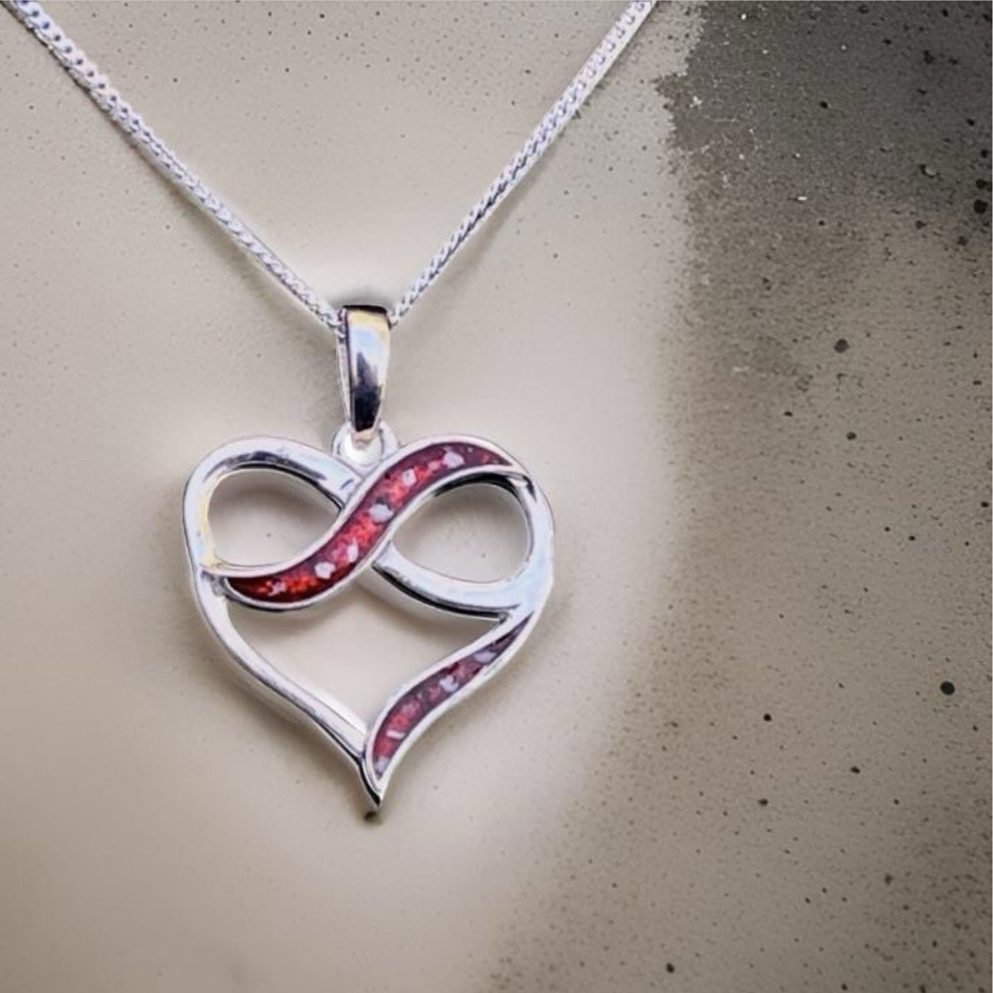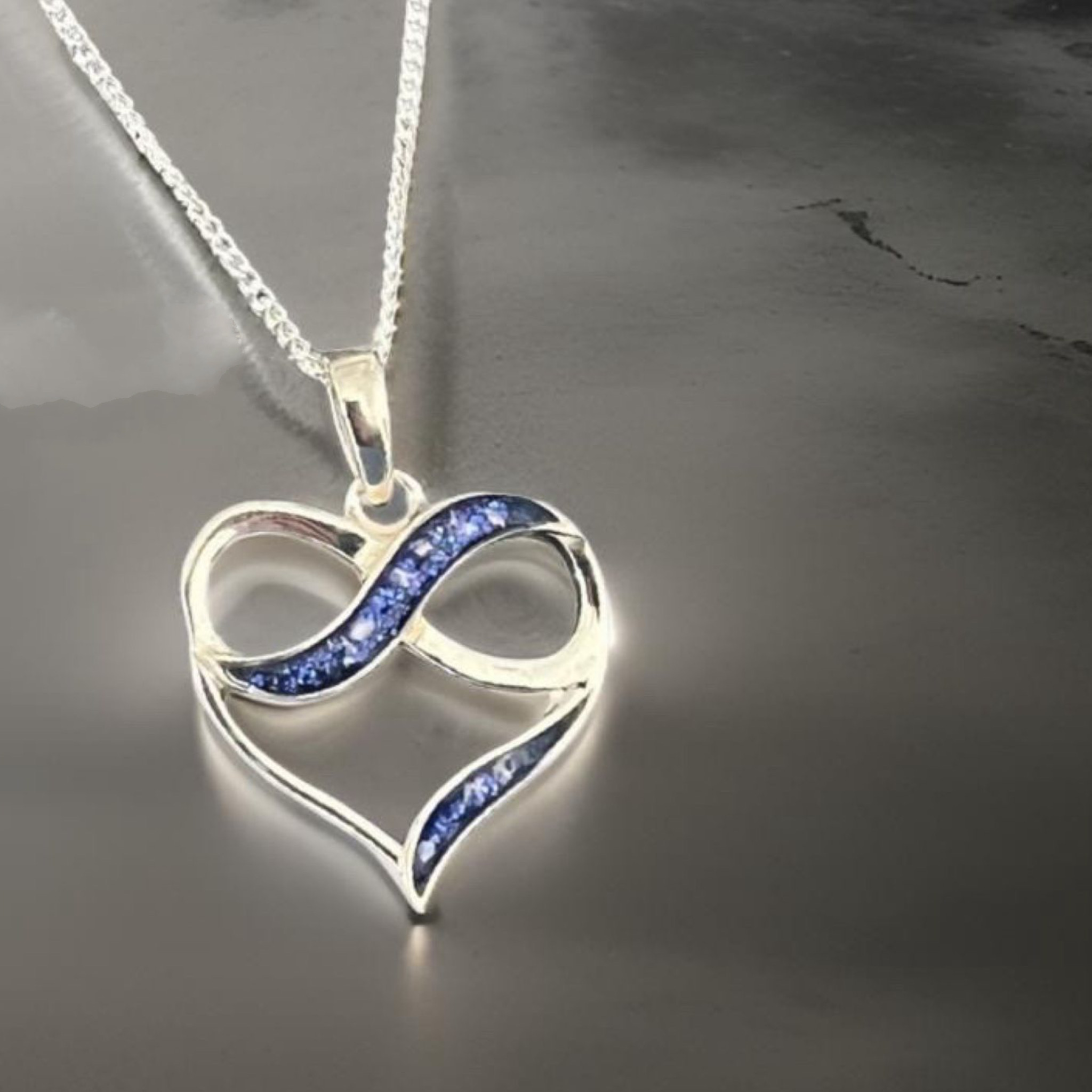 Inspired by the unbreakable bond between you and your loved one.  Celebrate everlasting love with our Silver Infinity Heart Pendant measuring 20x18mm with two delicate chambers perfect to showcases your loved ones’ Inclusions subtly forever.