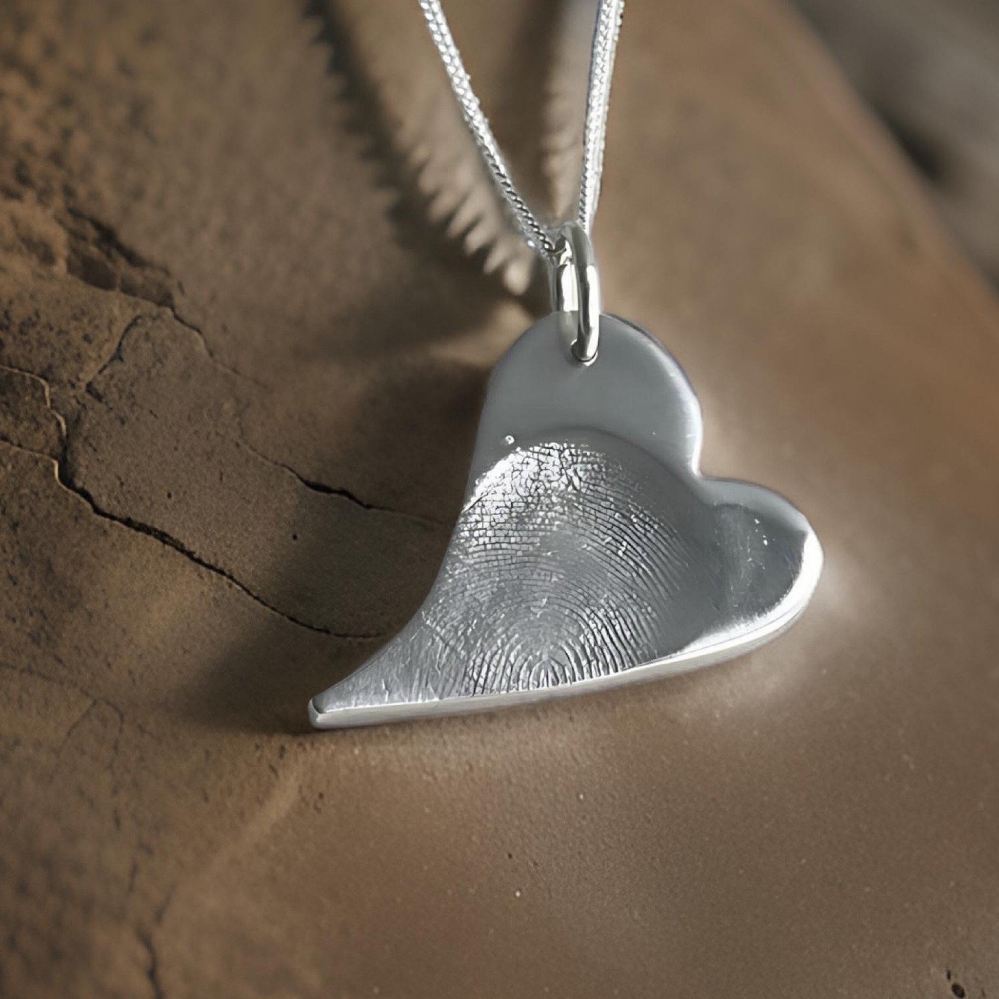 When making your necklace, your loved ones finger is gently pressed onto our silver clay, which is then shaped, fired, and hand-polished for a unique, bespoke, individual piece of jewellery.