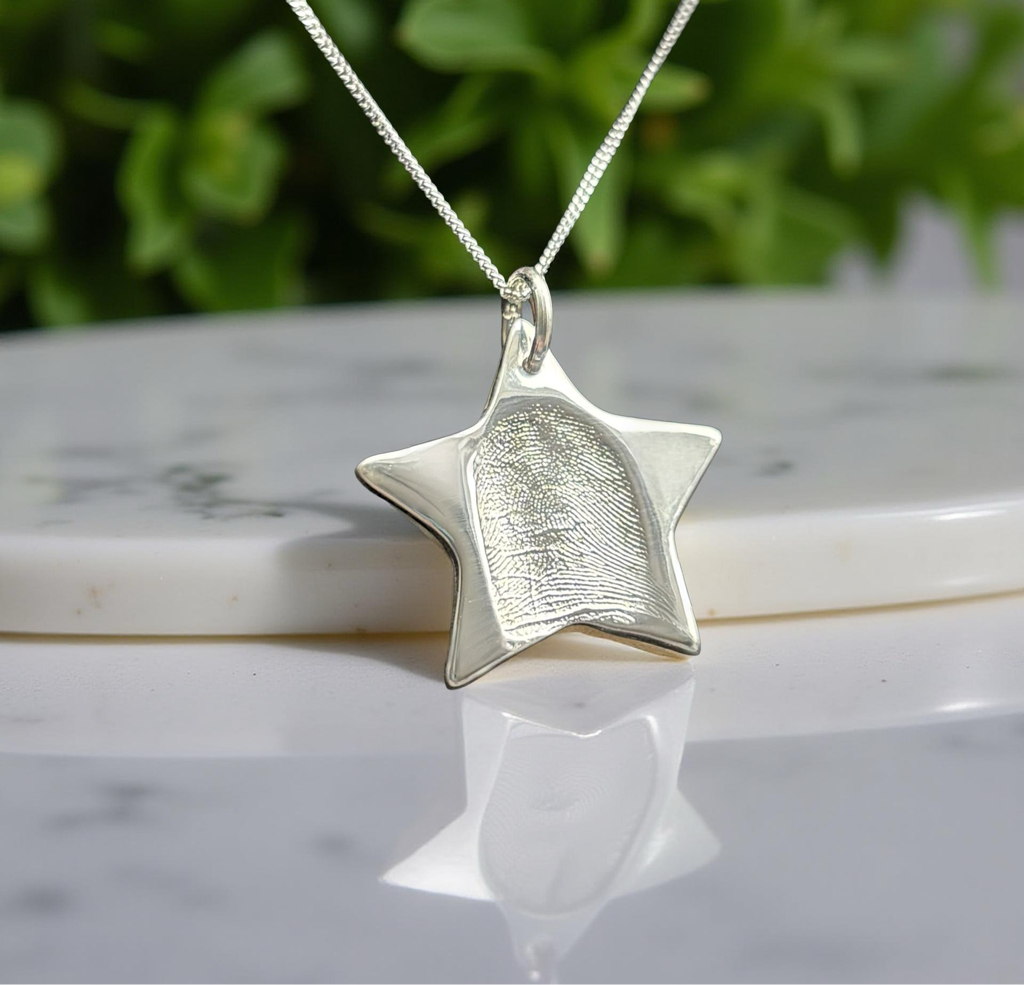 Our “Touch the Silver” fingerprint necklace is designed to capture your loved ones cherished fingerprint.