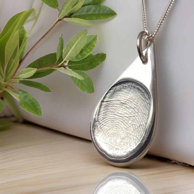 Our “Touch the Silver” fingerprint necklace is designed to capture your loved ones cherished fingerprint.