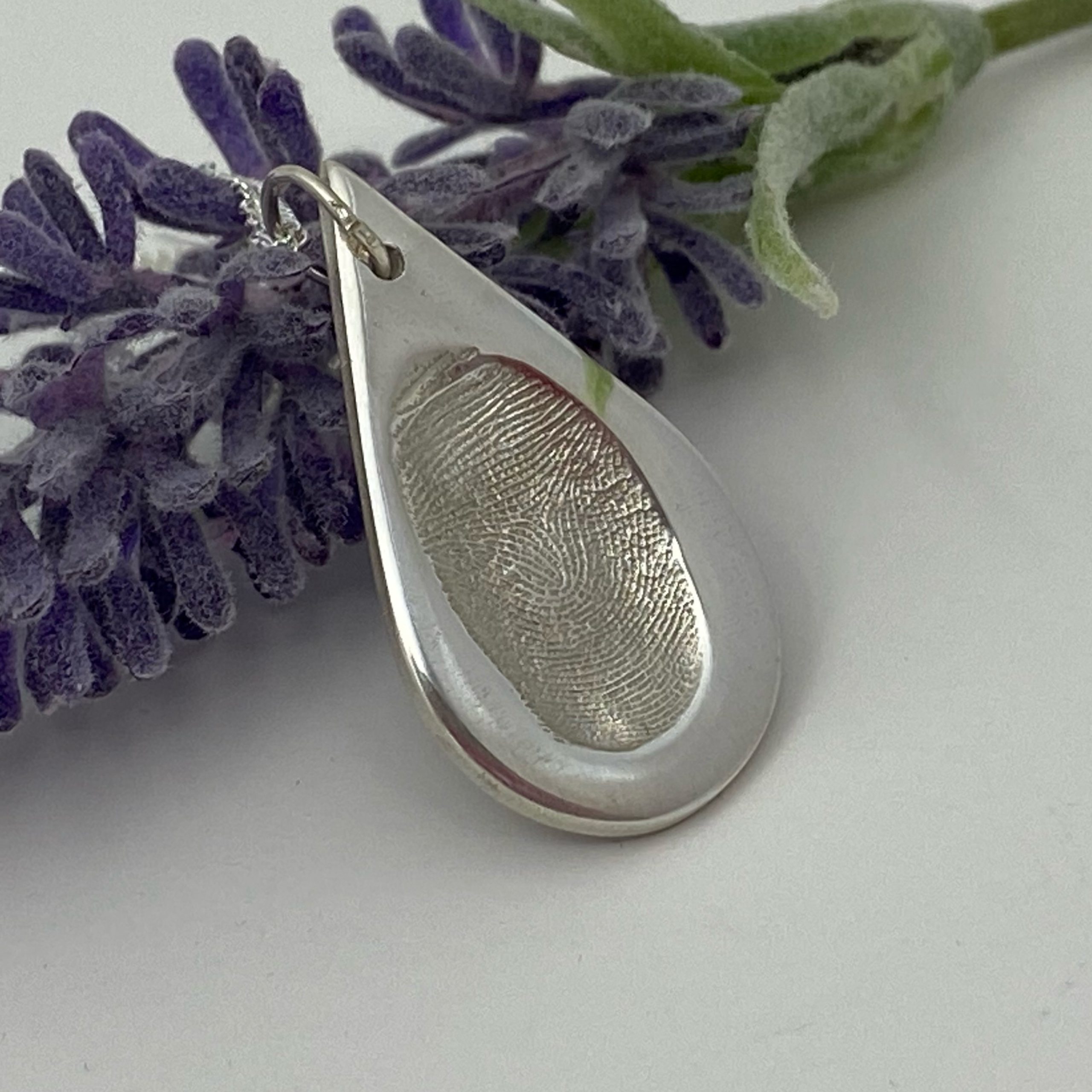 When making your necklace, your loved ones finger is gently pressed onto our silver clay, which is then shaped, fired, and hand-polished for a unique, bespoke, individual piece of jewellery.
